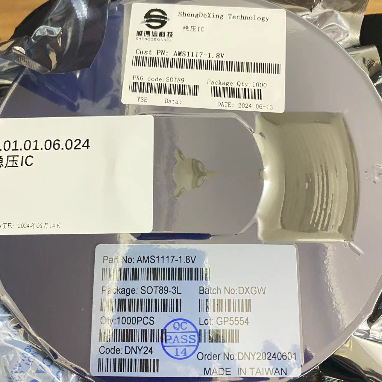 商品名称:AMS1117-1.8V 封装SOT-89 原装稳压三级管芯片IC 编带